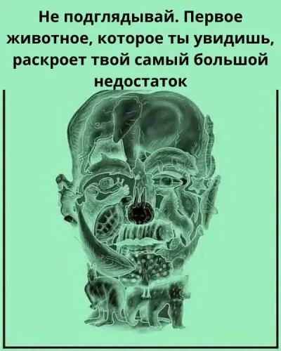Если вы когда-нибудь задумывались, какой ваш самый заметный «недостаток», попробуйте пройти простой тест. На изображении показано человеческое лицо, составленное из множества разных животных. Каждое животное здесь символизирует определённую черту, которую можно отнести к слабым сторонам характера.