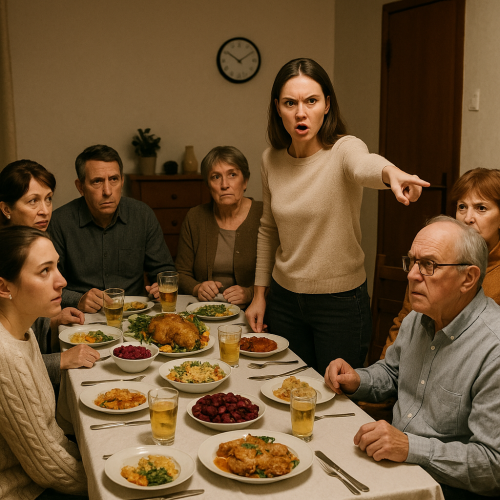 В этот момент что-то внутри Анны щёлкнуло. Все годы терпения, улыбок и проглатывания обид вылились в одно короткое движение. Она встала из-за стола, глядя на всех собравшихся с неожиданным спокойствием. Сергей удивлённо спросил: