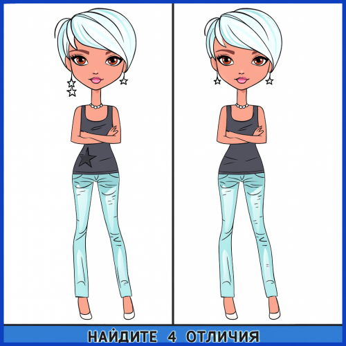 Перед вами две пары картинок с девушками — на каждой из них спрятаны по 4 отличия. Ваша задача — найти их все. Будьте внимательны: некоторые изменения могут быть очевидными, а другие — тщательно замаскированы.