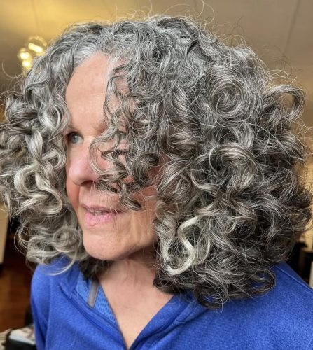 Идеальный выбор для тех, кто хочет красиво подчеркнуть естественную седину. Лёгкая волнистая текстура создаёт объём, а уход с использованием блеск-шампуня сохраняет здоровый вид волос.