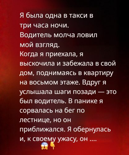 Было уже далеко за полночь, ближе к трём, когда я, обессиленная после тяжёлого дня, опустилась на заднее сиденье такси. Город погружался в сон, и лишь редкие огни туманно отражались в стекле. Водитель почти не говорил, но я уловила, как он несколько раз задерживал взгляд на мне в зеркале. Каждый такой момент заставлял сердце стучать быстрее, будто предупреждая о возможной опасности.