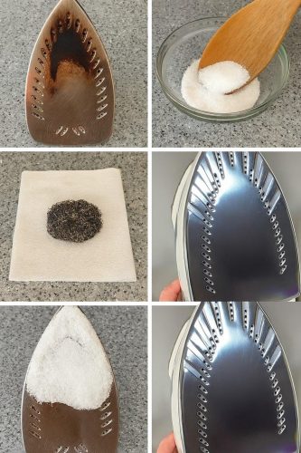 Разогрейте утюг (без пара!) и проведите им по соли в разных направлениях несколько раз.