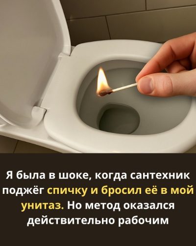 Пришёл спокойный, деловой мастер — без лишних разговоров. Он внимательно выслушал проблему, проверил сантехнику… и неожиданно достал коробок спичек. Одну поджёг, дождался, пока та немного погорит, и просто бросил её прямо внутрь унитаза. Я даже слова не успела сказать — настолько странным мне показалось это действие.