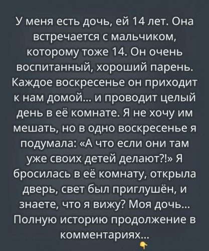 В этот момент я ясно поняла: мы, родители, часто склонны придумывать себе страшные сценарии, тогда как реальность оказывается куда проще и спокойнее. Никакого скрытого смысла, никаких тайн — просто двое подростков, которые вместе разбираются в учёбе и поддерживают друг друга.