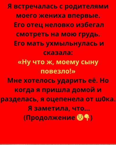 «Впервые знакомилась с родителями жениха. Его отец странно отводил взгляд, а мать улыбалась так, будто знала какой-то секрет. Уже дома, снимая вещи, я поняла почему: весь вечер ходила в свитере, надетом наизнанку, да ещё и с ярлыком на спине. Не удивительно, что они смотрели так странно — я выглядела как живая рекламная бирка».
