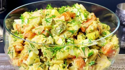 Простой, сытный и при этом небанальный салат отлично подойдёт как для повседневного меню, так и для праздничного стола.