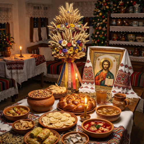 Когда на небе загоралась первая рождественская звезда, а в доме зажигали свечу, в жилище торжественно заносили дидух — сноп из отборного зерна. Его устанавливали на покуте, рядом с иконами, в самом почётном и светлом месте.