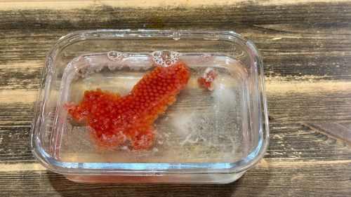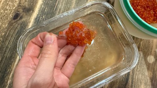 - По истечении времени тщательно моем руки и аккуратно пальцами отделяем икринки от плёнок.