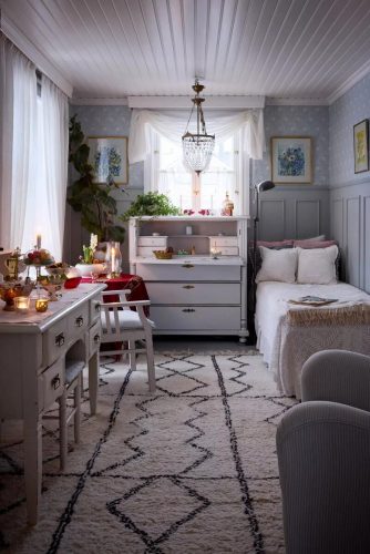 Рядом с кухней расположена спальня мамы Уллы. Раньше она жила в просторной комнате на втором этаже, но со временем лестница стала для неё сложной, и на первом этаже оборудовали уютную спальню.