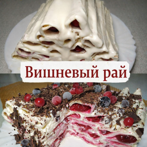 Гости ни разу не смогли угадать, из чего он сделан. А когда узнают, что в основе — обычные рулеты из лаваша, искренне не верят. По сути, это мой ленивый вариант знаменитой «Монастырской избы», только без возни с тестом и духовкой. Я дала ему название «Вишнёвый рай» — по-моему, очень точное. И самое приятное — понадобится всего четыре основных ингредиента.