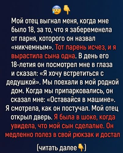 Ни объятий, ни слов прощания. Лишь тихий щелчок выключенного света за спиной. В одной руке — маленькая сумка, внутри — жизнь, которая только начиналась. Тогда я впервые поняла, как в одно мгновение может исчезнуть всё, что ты считала опорой. Спустя восемнадцать лет эта жизнь — мой сын — снова появится на том же пороге с посланием, которое мой отец запомнит навсегда.