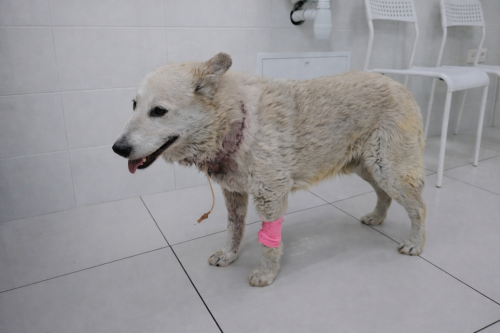 Пёс стойко переносил все процедуры, хотя его возраст был уже старый. В клинике его готовили к операции. Операция длилась два часа: края кожи на шее и спине скрепили хирургическими нитями. После выписки он получал препараты для заживления повреждений и борьбы с инфекцией.
