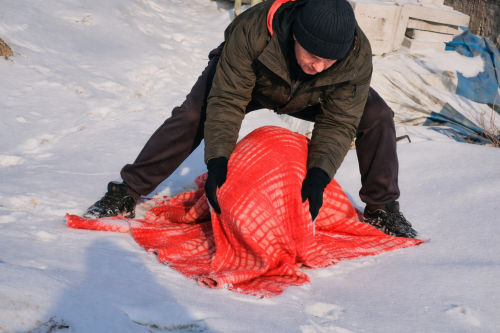 Мы дали ему имя Снежок — белой собаке, найденной зимой, это казалось естественным. Аккуратно завернув его в плед, мы отнесли в машину, чтобы согреть. Пёс был истощён, дрожал, но не сопротивлялся, словно понимал, что мы пришли помочь.