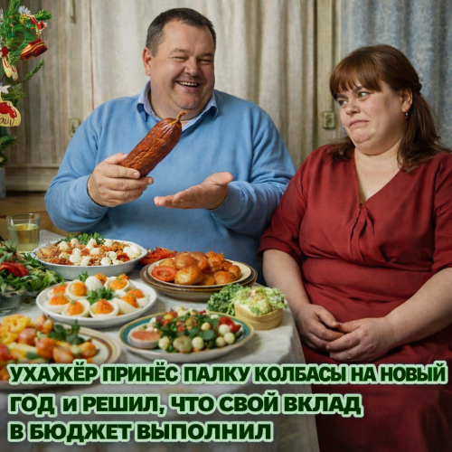Ухажёр принёс палку колбасы на Новый год и решил, что свой вклад в бюджет выполнил