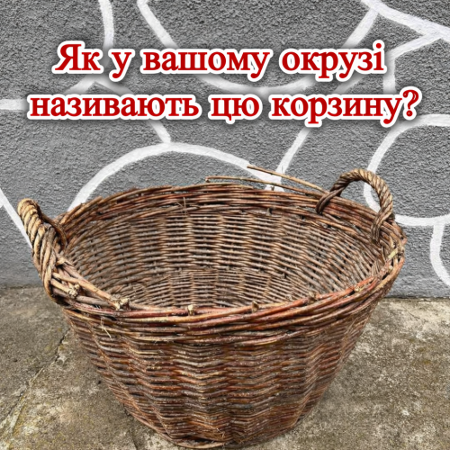 На фотографии изображена плетёная корзина из лозы с двумя ручками. На первый взгляд — самый обычный предмет, но именно он наглядно показывает, насколько богатой и живой является украинская речь. В разных уголках Украины эту вещь называют по-разному, и каждое название несёт в себе характер региона и его историю.
