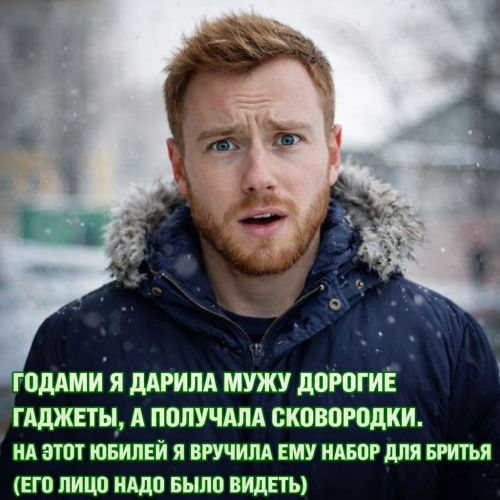 — С днём рождения, любимый. Очень полезный подарок. Ты же каждый день бреешься? Вот я и решила — зачем тратиться на ерунду, если можно подарить то, что точно пригодится.
