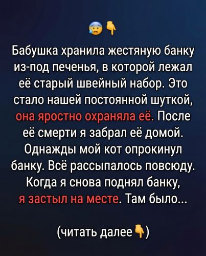 Эта банка никогда не была важна из-за своего содержимого. Она была напоминанием о простой истине: даже самые скромные, потертые и незаметные вещи способны хранить целую жизнь любви.
