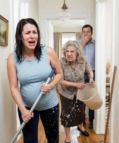 В приступе ярости мать схватила ведро, наполненное водой, и с силой выплеснула его прямо на невестку. Холодная вода мгновенно окатила Ирину с головы до ног. Мокрая одежда прилипла к телу. Она пошатнулась от неожиданности, тяжело выдохнула и инстинктивно прикрыла руками округлившийся живот.