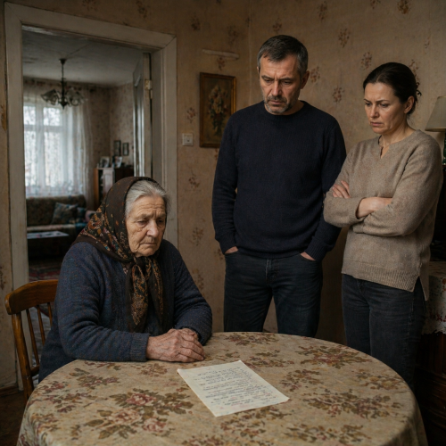 Я надела синее платье — то самое «выходное», которое ещё держится, если не смотреть на протёртые локти. Смочила ладонь, пригладила волосы, протёрла рамку с фотографией покойного мужа и поставила рядом снимок сына с его семьёй.