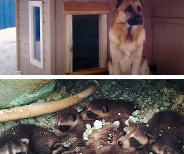 Собака отказалась заходить в теплую будку, стоя на морозе. Хозяин решил заглянуть внутрь и увидел другого зверя