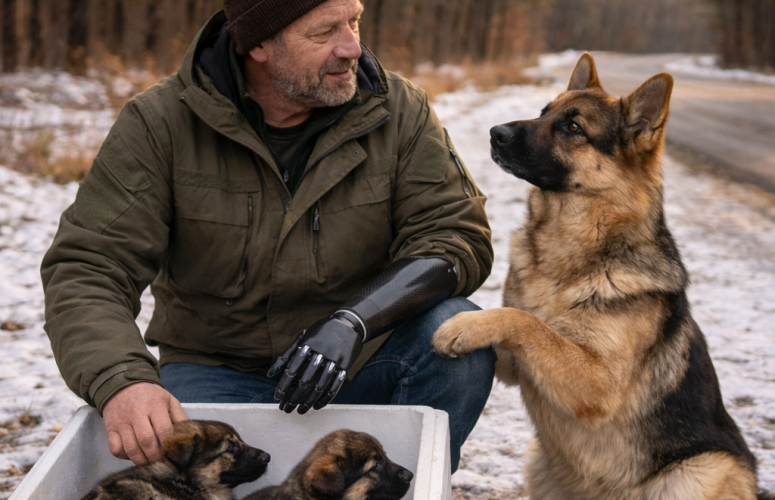 Немецкая овчарка остановила машину на заснеженной дороге. Она даже не подозревала, что водитель с «железной рукой» окажется тем человеком, который ради неё пойдёт до самого конца.