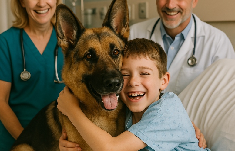 Перед хирургическим вмешательством мальчик крепко прижал к себе свою собаку, но внезапно питомец сорвался с