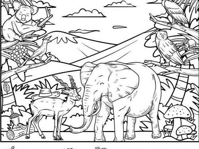 Найди жёлудь, шляпу, гроздь винограда, паука, топор, морковь и лист
