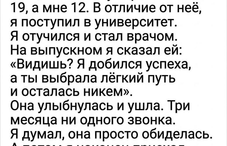 Когда за воскресным столом её собственный муж, при сыне, невестке и внуке, с ехидной улыбкой произнёс